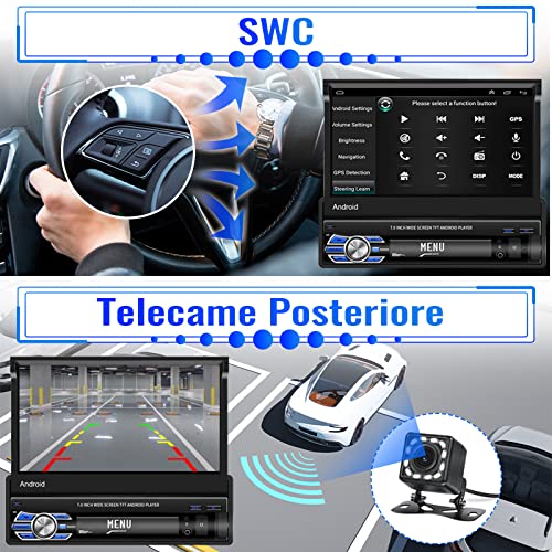 【Autoradio Android da 7 pollici】: con sistema Android 10.1, schermo touch screen da 7 pollici retrattile manualmente. Con memoria in esecuzione 2G, memoria di archiviazione 32G. Molti dei tuoi programmi musicali e video preferiti possono essere salvati. Supporta il controllo del volante dell'auto originale, che è comodo per controllare il giocatore durante la guida.