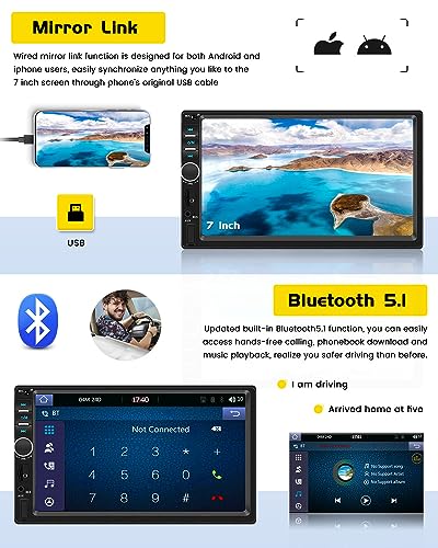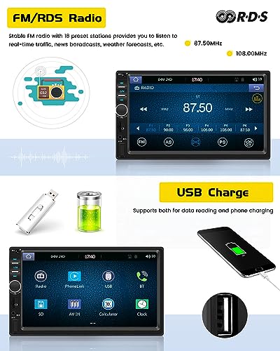⭐Bluetooth 5.1 Aggiornato e Radio FM: La radio per auto touchscreen integrata Bluetooth 5.1 rende più comodo effettuare o ricevere chiamate importanti. La riproduzione musicale wireless Bluetooth ti permette di goderti le canzoni preferite semplicemente abbinandole al tuo smartphone. La radio FM integrata con 18 stazioni preimpostate ti consente di ascoltare nuove trasmissioni, traffico in tempo reale, previsioni del tempo ovunque e in qualsiasi momento