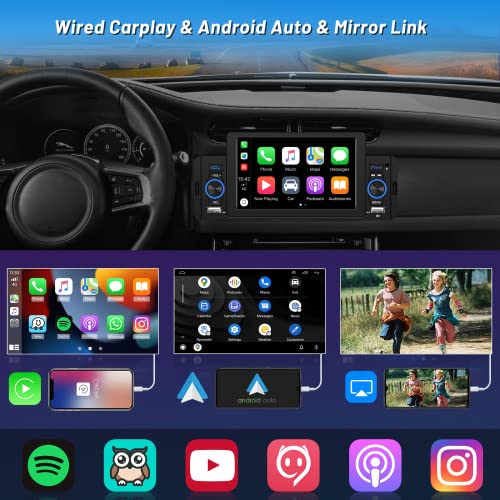 Hikity Autoradio Bluetooth 1 DIN con Apple Carplay e Android Auto 5 Pollici Touchscreen Stereo Auto Bluetooth con FM USB TF AUX Mic Retrocamera Mirror Link per Android/iOS Radio