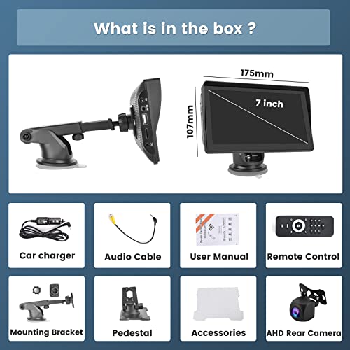 Hikity 7" Autoradio Portatile con Wireless Apple Carplay Android Auto Mirror Link Touchscreen Supporto autoradio FM Trasmettitore Bluetooth USB AUX TF Card AHD Retrocamera 12-36V