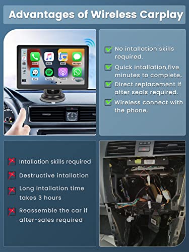 Facile da installare e utilizzare: stereo wireless carplay con staffa e adesivo, adatto per la maggior parte dei tipi di veicoli (DC 12-26V) e alimentazione dalla presa accendisigari, riduce al minimo l'installazione complicata, con 2 diverse opzioni di montaggio. Grazie al supporto fisso, è possibile eseguire comandi vocali semplici, cambiare schermo e altre operazioni senza toccare lo schermo, che è possibile controllare anche tramite il telecomando