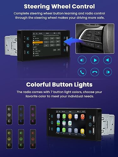 【Lettore multifunzionale】Bluetooth per chiamate in vivavoce, lettore musicale. La radio FM può preselezionare 18 stazioni comuni. Questo ricevitore audio per auto supporta l'apprendimento dei pulsanti originali del volante. Sono supportate diverse opzioni audio EQ per una migliore esperienza di ascolto.