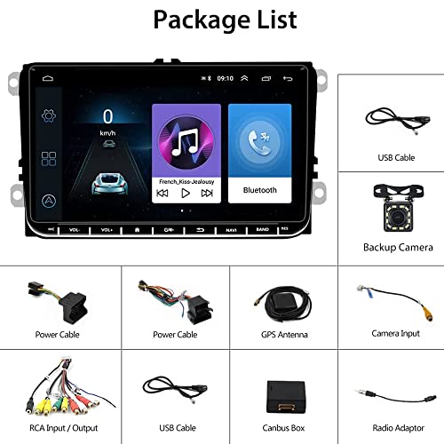 Autoradio Android per VW / GOLF / SEAT -- Dimensioni del radio bluetooth auto: 215 * 53 * 130 mm, touch screen capacitivo da 9 pollici, 1024 * 600 per una visualizzazione ultra chiara. Dotato di Quad Core 1GB RAM e 16GB ROM. Con due porte di uscita/ingresso USB, video e audio, scelta multipla per la riproduzione multimediale. WIFI incorporato dell'autoradio Android 10 consente di utilizzare qualsiasi applicazione come Google Maps, Waze, Shopify ecc.
