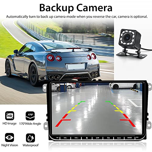 Hikity 9 Pollici RDS Autoradio 2 Din Android con Navi Wireless CarPlay per Golf 5 6 VW Passat Tiguan, Stereo Auto Bluetooth con Schermo Retrocamera Touch Screen Radio Auto con FM USB WIFI BT +CANBUS