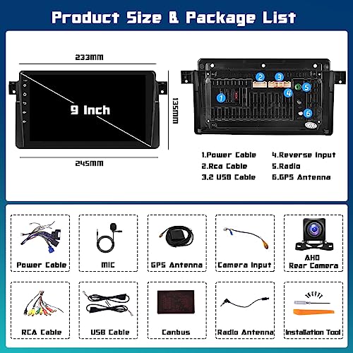 2+32G - Hikity 9 Pollici Stereo Auto con Navi per BMW E46(1999-2005)Wireless Apple Carplay/Android Auto Android Autoradio Bluetooth con Schermo WiFi HiFi USB SWC RDS FM Retrocamera