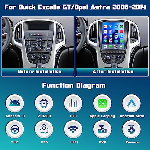 Hikity 9,7 Pollici Wireless Apple Carplay Autoradio per Buick Excelle GT/Opel Astra 2006-2014 Android 11 Autoradio Bluetooth con Schermo GPS Navigazion Android Auto WiFi FM RDS SWC HiFi USB Mic Cam