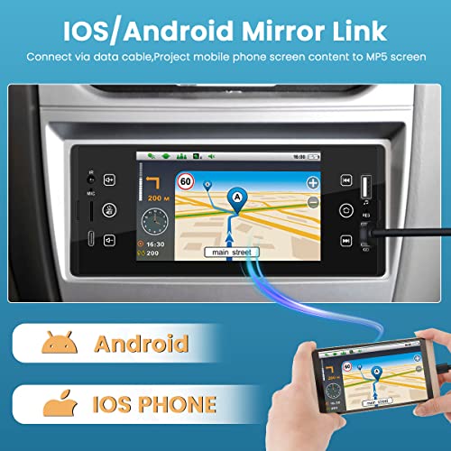 Mirror Link: La autoradio Bluetooth supporta Mirror Link per iOS/Andoid. Collegate il vostro telefono tramite il cavo USB originale e sincronizzate le pagine del vostro telefono con lo schermo dell'autoradio per visualizzare informazioni, navigare, ascoltare musica e altro ancora.