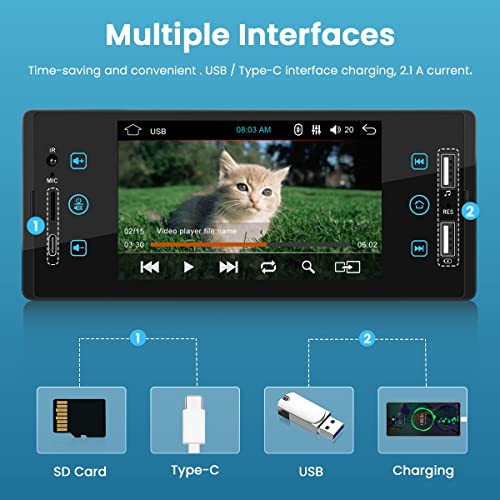 Hikity Touchscreen Autoradio 1 Din con Schermo da 5 Pollici Auto Stereo Bluetooth Single Din con Mirror Link per iOS/Android EQ AUX Type-C USB Telecamera