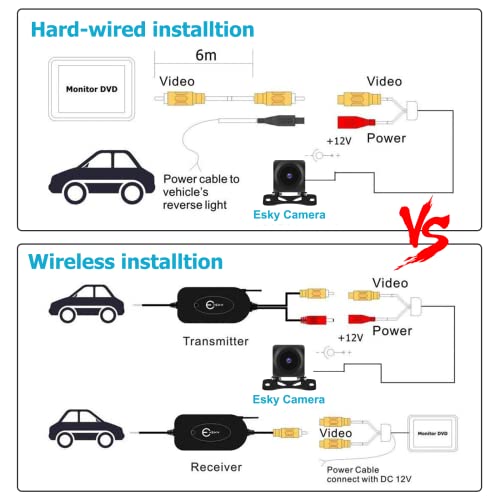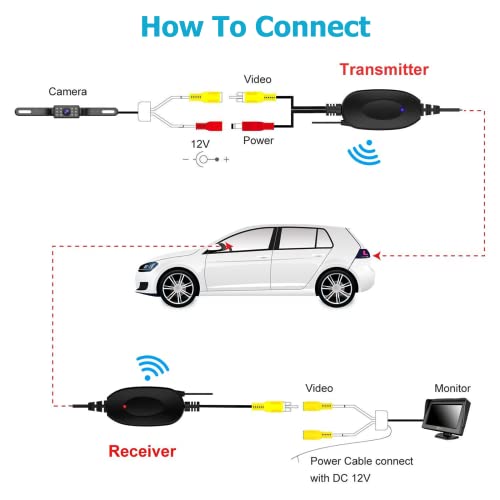 Hikity 2,4 GHz Kit Trasmettitore e Ricevitore Video Senza Fili per Auto Telecamera Retromarcia DC12V