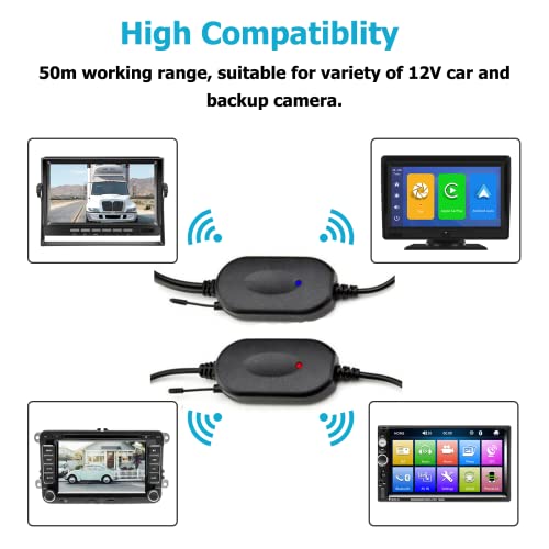 Il trasmettitore wireless ha una portata massima di 50 metri e può essere alimentato da qualsiasi veicolo a 12 V CC. (Le aree aperte senza altre forti interferenze di segnale saranno più lontane)