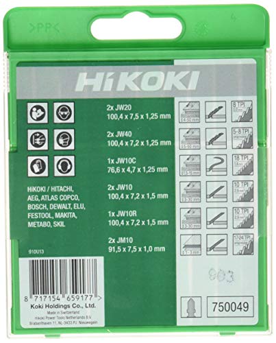 HIKOKI 750049 - Surtido de 10 hojas de sierra: 2 x JW20 2 x JW40 1 x JW10C 2 x JW10 1 x JW10R 2 x JM10