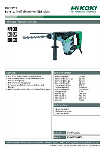 Hikoki DH30PC2WSZ Martello Combinato 850 W 3.2 J (Epta), 230 V