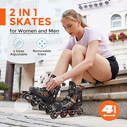 Hikole Pattini in linea 2 in 1 regolabili per bambini, pattini in linea per adulti e ragazzi, cuscinetti ACEB7, pattini da pattinaggio per bambini
