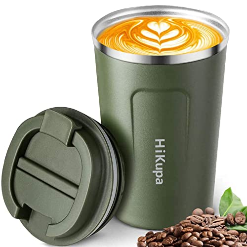 HiKupa 13oz Isolato Tazza da Viaggio con Coperchio, A Prova di Perdite, Doppia Parete Acciaio Inossidabile Tumbler, Senza BPA, Vuoto Tazza da Termica per Bevande Calde e Fredde (380 ml, verde)