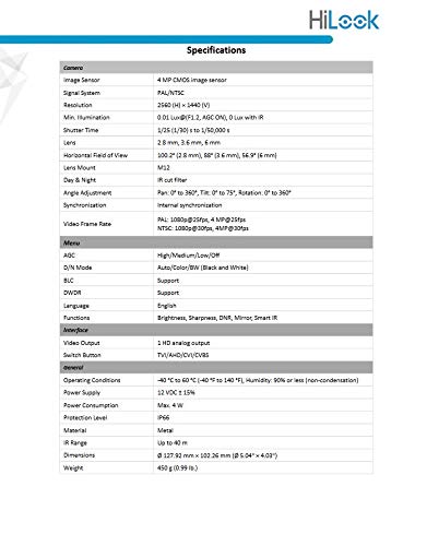 HIKVISION HiWatch by THC-T240 2,8 mm 4MP HD EXIR 40 m IR TVI/AHD/CVI/CVBS Turret Dome CCTV Camera Corpo in Metallo - Bianco