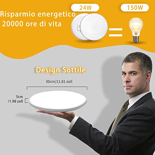 【Risparmio energetico e lunga durata】 La plafoniera LED da 24 W (2200 LM) equivale a una lampadina a incandescenza tradizionale da 150 W, risparmiando oltre il 90% sulla bolletta elettrica. La durata è di oltre 20.000 ore. Usali con sicurezza, risparmia sulle bollette energetiche e rilassa il tuo portafoglio.