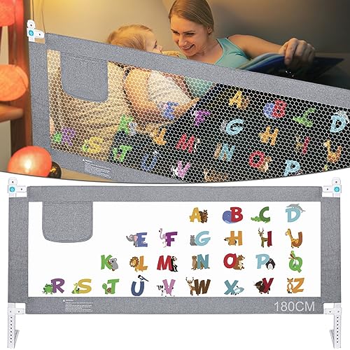 HILEYOLLA Sponde Letto Bambini 180 CM, Sbarra Letto Bambini Può Sollevamento Verticale Sponda Letto anti Caduta (1 Lato)