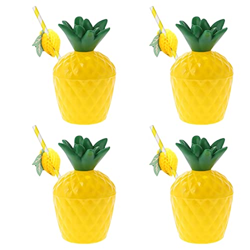 Hileyu 4 Pezzi Set di Bicchieri di Luau hawaiani con 4 Pezzi di cannucce Bicchiere in plastica a Forma di Ananas per Articoli per Feste a Tema sulla Spiaggia