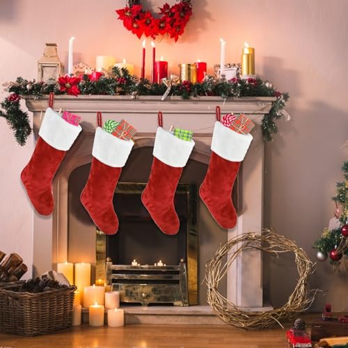 Hileyu 4 Pezzi Calze Natalizie,Calze Natalizie da Appendere,Calze Befana Vuote in Peluche,Calze Natale da Appendere,Calza Natale,Calze di Natale Sacchetti Regalo di Caramelle per La Famiglia,46CM