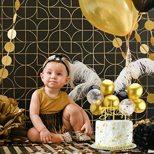 Hileyu 19 Pezzi Decorazioni per Torte di Buon Compleanno con Palloncini Topper per Torta di Buon Compleanno in Acrilico Decorazione per Torta Nuvola con Palloncini in Lattice di coriandoli Black Gold