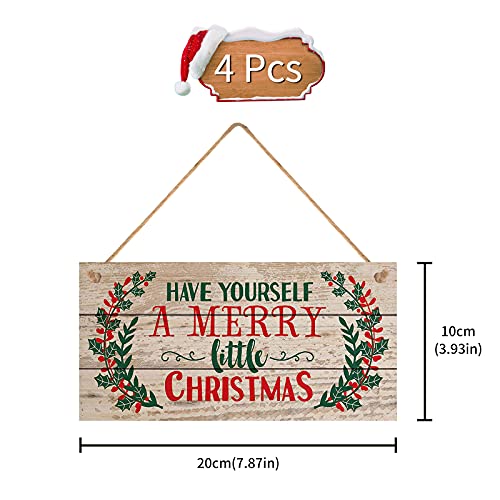 Hileyu 4 Pezzi Targa in Legno Natale Targa in Legno Buon Natale Decorazione per cartelli da Appendere di Natale per la Decorazione della Parete della Porta di casa di Natale, 20 x 10cm