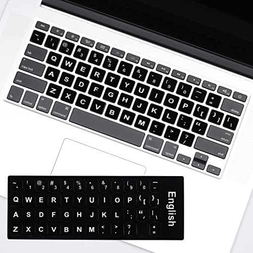 Hileyu Tastiera inglese Sostituzione adesivi Tastiera adesivi Regno Unito Non trasparente adesivi neri con lettere bianche Tastiera del computer Laptop Desktop notebook adesivi English