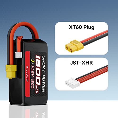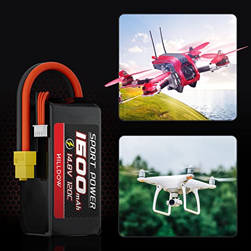 Hilldow M10 RC Batteria 4S Batteria Lipo 14.8V 120C 1600mAh con connettore XT60, 2 Pack Lipo batteria ricaricabile per RC aereo UAV Drone FPV