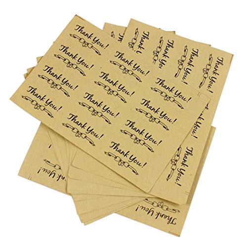 Hillento 20 fogli a forma di rotondo Thank You etichetta adesiva carta da parati Grazie etichetta, etichette adesive, adesivi decorativi di tenuta, carta naturale kraft, fiocco (set di 240)