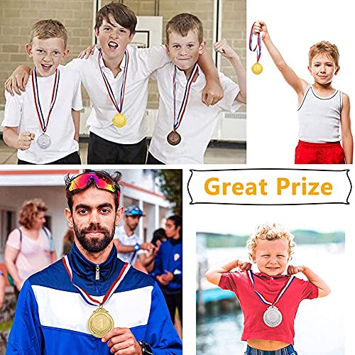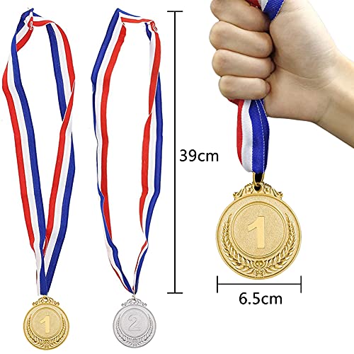 ★【Confezione】 Contiene 2 pezzi di medaglie d'oro, 2 pezzi di medaglie d'argento e 2 pezzi di medaglie di bronzo, per un totale di 6 pezzi di medaglie, adatti a più giochi, giochi di squadra e feste di classe, ogni medaglia ha un cordino.