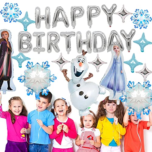 ☆ 【Decorazioni Principessa】 1 * palloncini in alluminio con alfabeto di buon compleanno + 7 * palloncini in alluminio con stella a quattro punte + 2 * palloncini con personaggi principessa + 1 * palloncini in alluminio con pupazzo di neve + 4 * palloncini in alluminio con fiocchi di neve