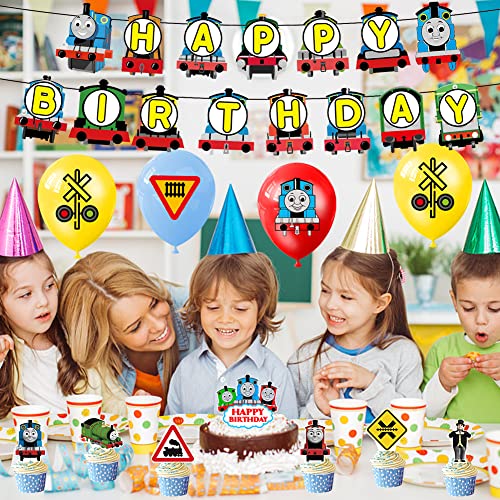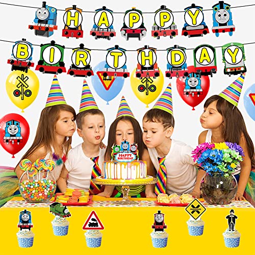 Hilloly Thomas Train Tema Compleanno Feste Set 32 Pezzi Thomas Train Articoli per Feste Striscioni Decorazioni per Torta Palloncini in Lattice Thomas Decorazione per Feste di Compleanno per Bambini