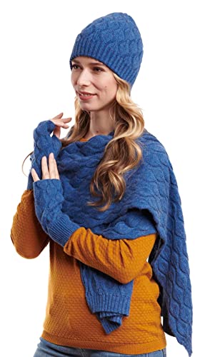 Hilltop Caldo set invernale in 100% LANA DI ANGORA, composto da sciarpa, berretto in maglia coordinato e beanie con pompon
