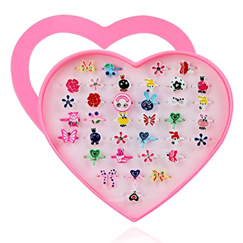 Hillylolly Anellino Bambina, 36 Pezzi Anelli Regolabili Carini per Bambini, Anelli Bambina Regolabili, Anelli Ragazza, Con Scatola porta Anelli, per Bambini Favori di Compleanno, Stile Casuale (C)