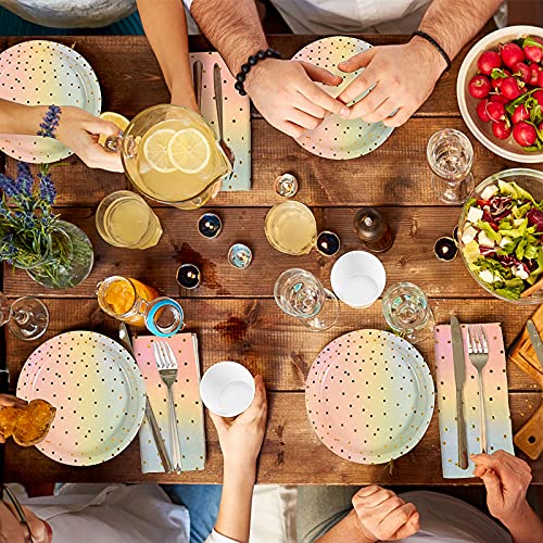 Hilsoeet Stoviglie Arcobaleno per Feste 156pz Posate Monouso Kit Party Tavola di 25 Persone Uso per Compleano Matrimonio Picnic Festa