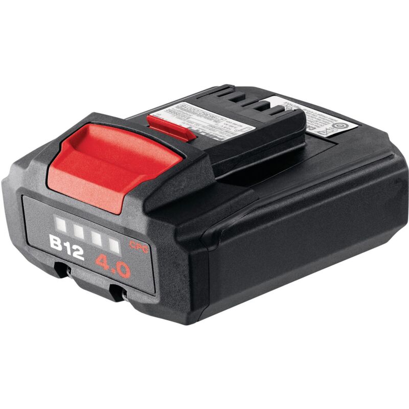Hilti Batteria B12 compatta ad alta potenza da 12V 4,0Ah (2330509) Contenuto della confezione 1x Pacco batteria B 12/4.0 Li-Ion. Caratteristiche Batteria Li-ion compatta ad alta potenza da 12 V 4,0 Ah. Tempo di ricarica con caricabatterie C4/36-350: 50 min. Peso: 0.35 kg. Dimensioni (LxPxH): 93 x 75 x 44 mm Vantaggi Batteria compatta ad elevate prestazioni per elettroutensili Hilti da 12 V (non compatibile con laser rotanti e l'inchiodatrice GX 3). Batteria agli ioni di litio più leggera e compatta: garantisce maggiore controllo e comfort, soprattutto quando si lavora in luoghi sopraelevati o difficili da raggiungere. Comprende la tecnologia CPC - cordless power care Hilti - un processore incorporato verifica che ogni cella della batteria eroghi in cantiere una potenza più affidabile, costante e di più lunga durata. Display con precisa indicazione del livello di carica: consente di evitare i tempi di fermo imprevisti degli attrezzi per una maggiore produttività sul posto. Protetto da
