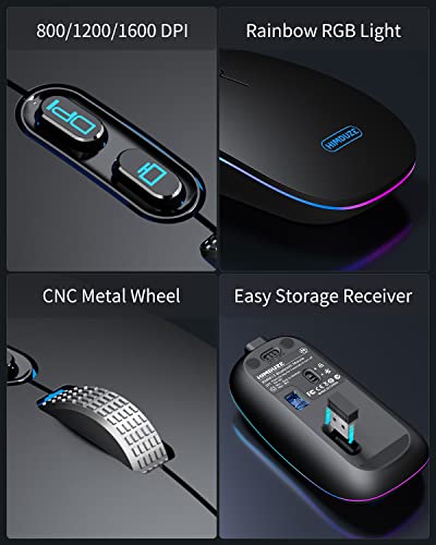 HIMDUZE Mouse Bluetooth, Mouse wireless silenzioso ricaricabile a LED Dual Mode (BT 5.1 + 2.4G USB) con pulsante Home, computer PC mouse cordless ottici retroilluminati RGB, nero