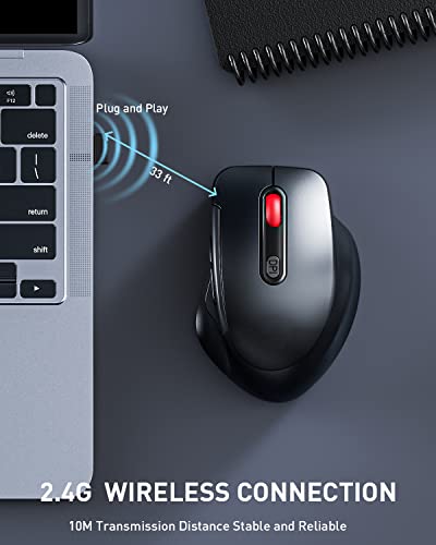 HIMDUZE Mouse wireless, Mouse senza fili per computer ergonomico e silenzioso da 2.4G con ricevitore USB, mouse da 2400 DPI con 6 pulsanti, per computer portatili, PC desktop (nero)