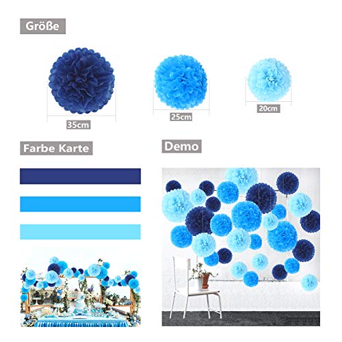 Himeland 30 Pezzi Pom Pom Carta Velina Decorativi, Blu Addobbi Battesimo Bimba Pompon Decorativo, per Feste, Matrimoni, Compleanno Vacanza, Natale, Festival, Della Festa Nuziale