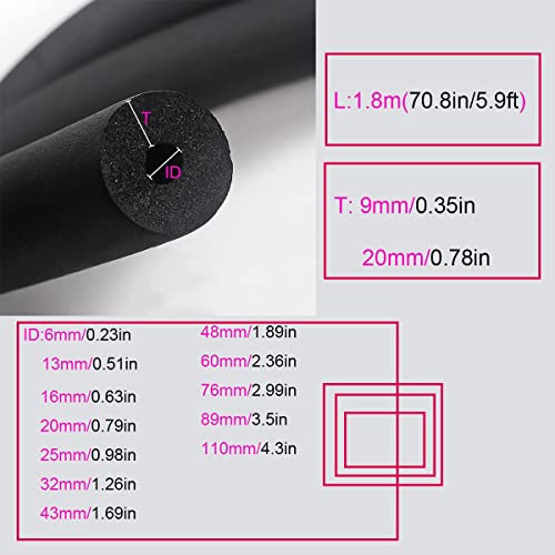 Himesi Tubo Isolante Condizionatore Nero Lungo 1.8m, Tubo Isolante in Espanso,Tubi della Caldaia in Inverno Freddo,1pcs (Color: 20mm/0.78in, Size: 60mm/2.36in)