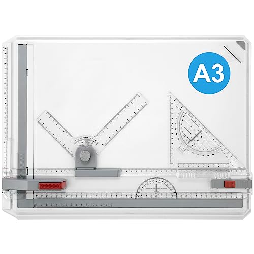 Tavola da disegno A3: strumenti da disegno più precisi, misurati in cm. Realizzato in plastica di alta qualità, leggero e durevole, progettato ergonomicamente. Dimensioni: 50 x 37 cm.