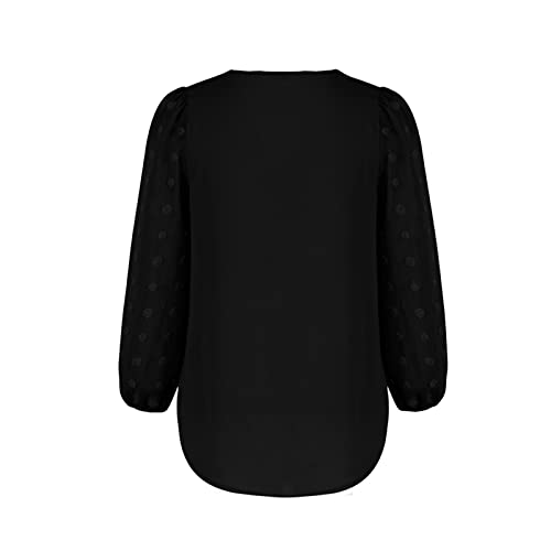 Himllauen Top Elegante da Donna Camicetta Ampia a Maniche Lunghe Scollo a V Tinta Unita Camicia Blusa Casual Primaverile Estivo (Nero, M)