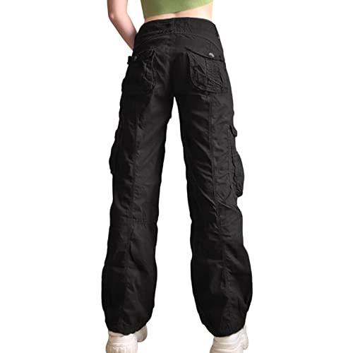 Himllauen Pantaloni Casual da Donna Pantaloni Cargo con Multitasche Pantaloni a Gamba Dritta Tinta Unita Pantaloni Neri Casual alla Moda (Nero, S)