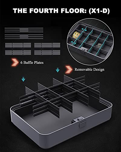 [Design rimovibile] La casella degli strumenti D-layer contiene 6 partizioni staccabili. La dimensione dello spazio della cassetta degli attrezzi può essere regolata attraverso la struttura dell'inserto scorrevole per soddisfare lo stoccaggio di diversi strumenti e parti, che è ordinato e facile da trovare.