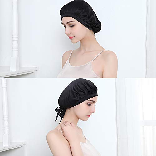 HINATAA Cuffia da notte in 100% seta di gelso, cuffia per la testa da donna per la bellezza dei capelli con fascia elastica per il sonno, la perdita dei capelli, protezione dei capelli, Nero