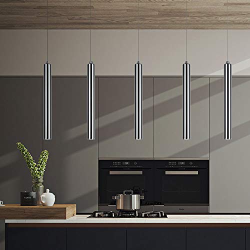 Hines Acciaio Inossidabile Lampada A Sospensione A Tubo Lungo Cilindro A LED Argento Lampada A Sospensione Regolabile Moderna Droplight Design Per Interni Lampada A Sospensione 3W Isola Pranzo Lampada