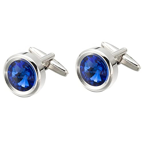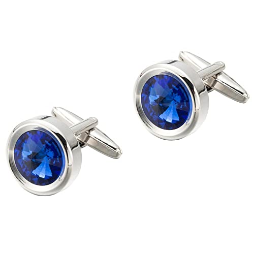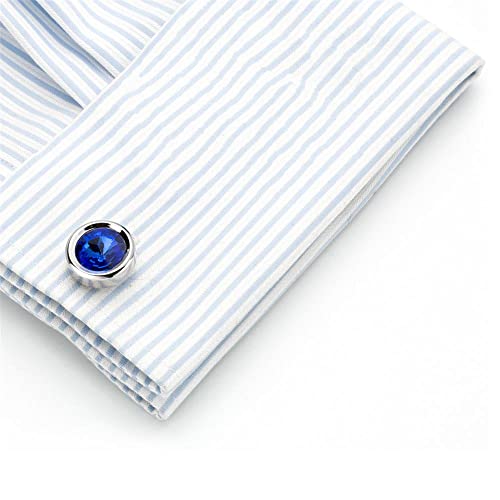 Hinleise Gemelli da uomo vintage con cristalli blu rotondi in rame con scatola di gemelli per abiti, camicia per matrimoni, feste di compleanno