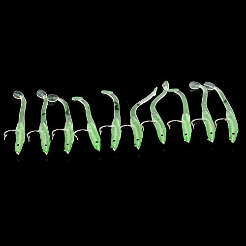 Hinmay, Esche da pesca, 20 pezzi, Da 6,8 cm, Morbide, Luminose, A forma d'anguilla, In gomma, Con ami per spigole