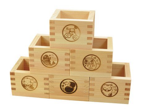 Hinoki tradizionale giapponese Lucky Sake Bowl - Lucky Snapper Pattern (con marchio di bruciatura) 83838
