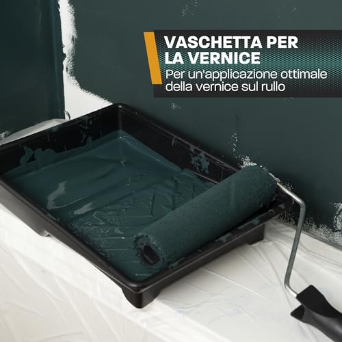 VERNICIATURA - Dai ritocchi con i pennelli per parete, ai lavori di bordatura con il rullo piccolo per pittura, ai lavori di pittura su larga scala con il rulli per imbiancare grande - il nostro kit imbiancatura fai da te include tutti gli strumenti necessari