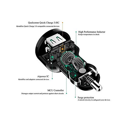 【Dual Quick Charge 3.0】Questo caricabatterie da auto con tecnologia Qualcomm Quick Charge 3.0 ricarica fino a 4 volte più velocemente e ricarica due volte più velocemente della ricarica rapida 1.0 e del 38% più velocemente rispetto alla ricarica rapida 2.0.